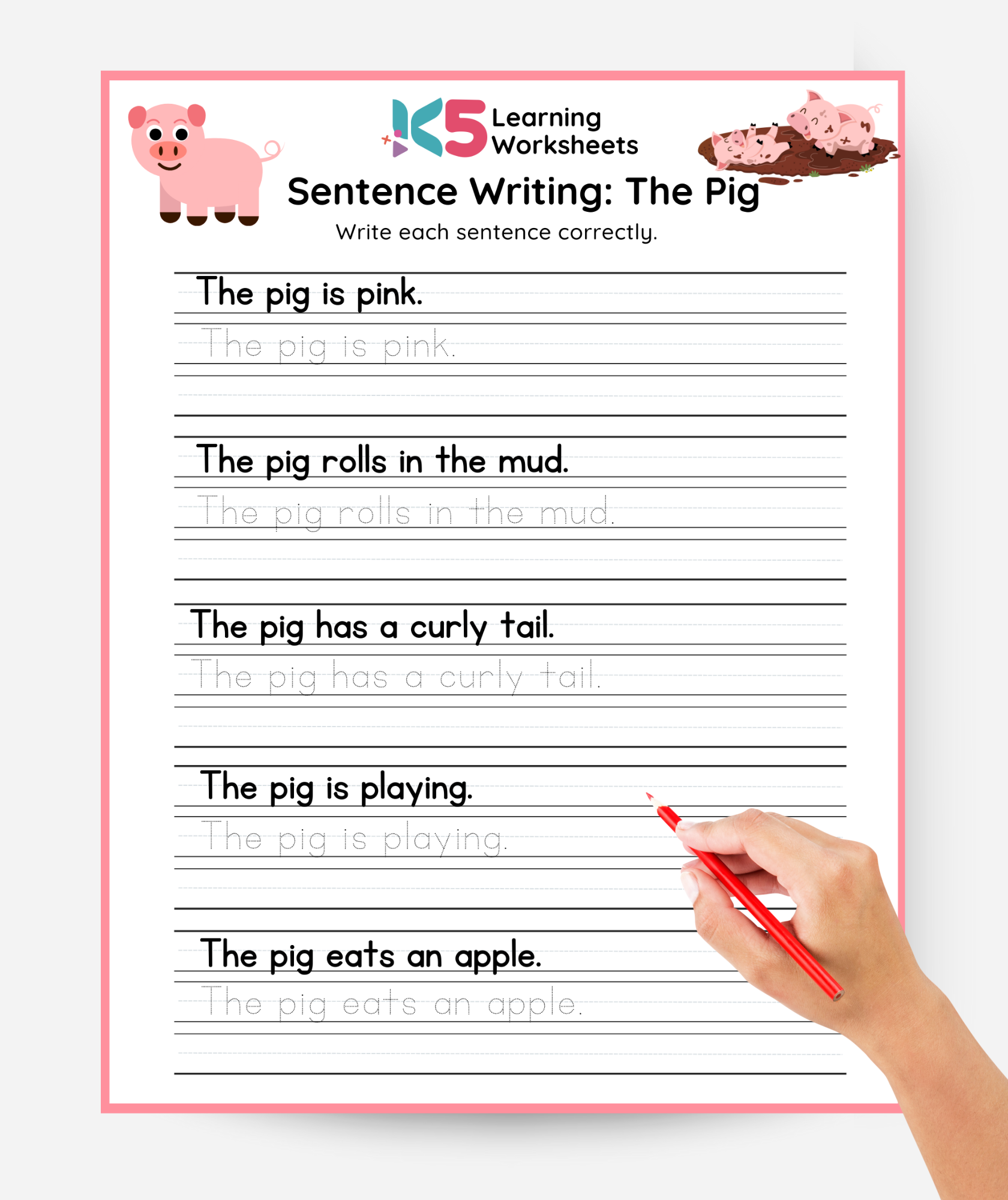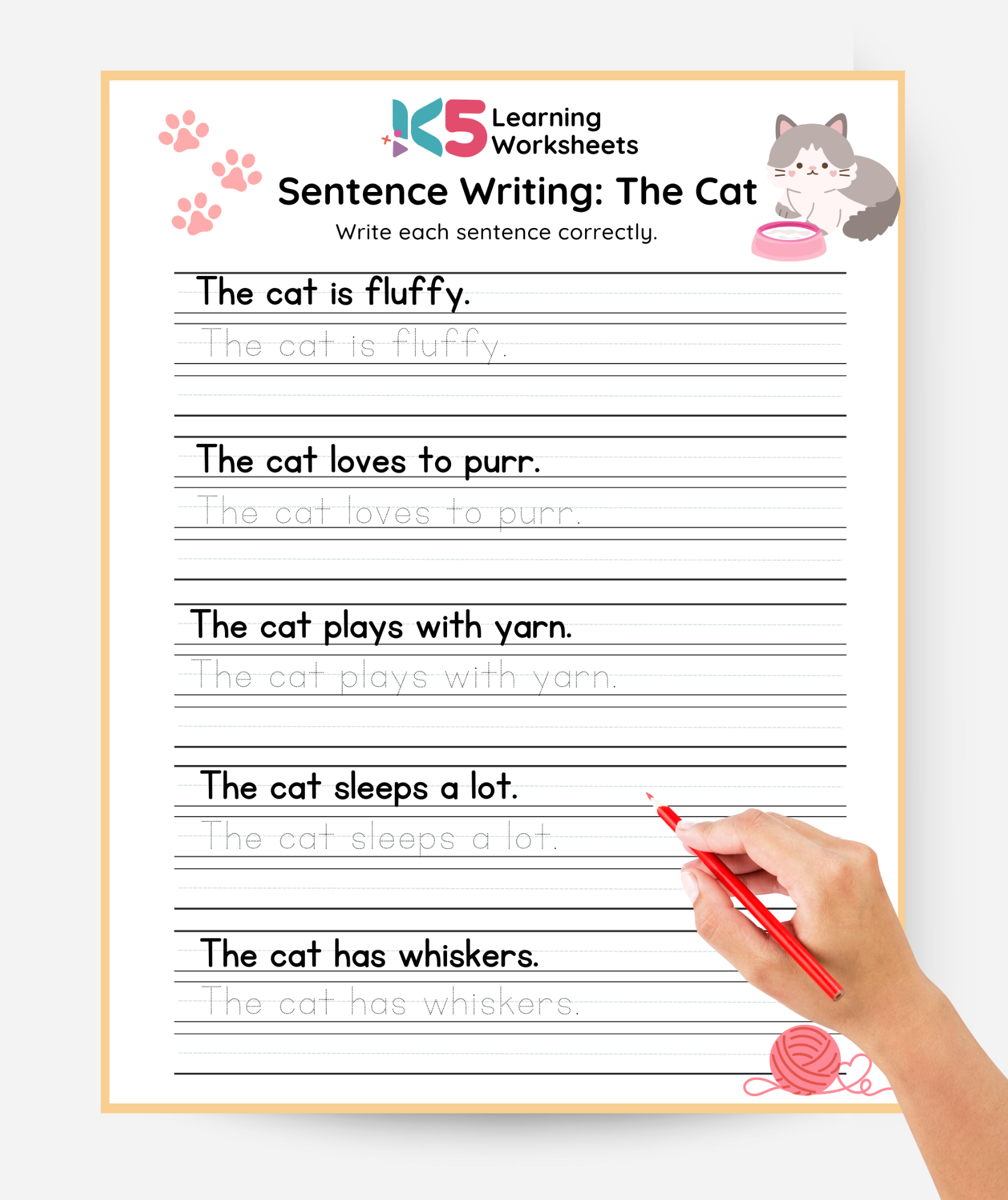 This worksheet helps kids develop their writing skills by tracing simple sentences that improving their handwriting and letter recognition.